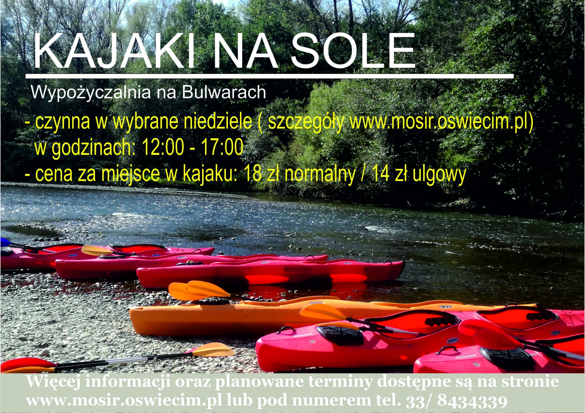 Miejski Ośrodek Sportu i Rekreacji w Oświęcimiu, TKKF MOTOR Andrychów oraz Miejskie WOPR zapraszają na kolejny sezon kajakowy!